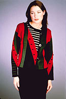 Sandras original handloom-knitted sweaters, coats and jackets are striking works of art and, at the same time, extremely well-made, wearable fashions. Made in the complex intarsia style, each garmet has a unique design and reflects an innovative mix of influences.