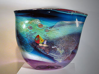 In the recent past I have had the opportunity to study under Lino Tagliapietra and Loredano Rosin, both masters of Morano, Italy. I have also been strongly influenced by Pino Signoretto in his attitude and approach to the material. Pino is a master glass blower, but of more importance, a pioneer in solid hot glass sculpture. Other artists that have had a strong influence on my work are Dale Chihuly, as he introduced me to hot glass, and William Morris, through his painterly approach to surface design and masterly control of form. My experience from watching these talented people work has led me to believe that any idea can be expressed in glass."